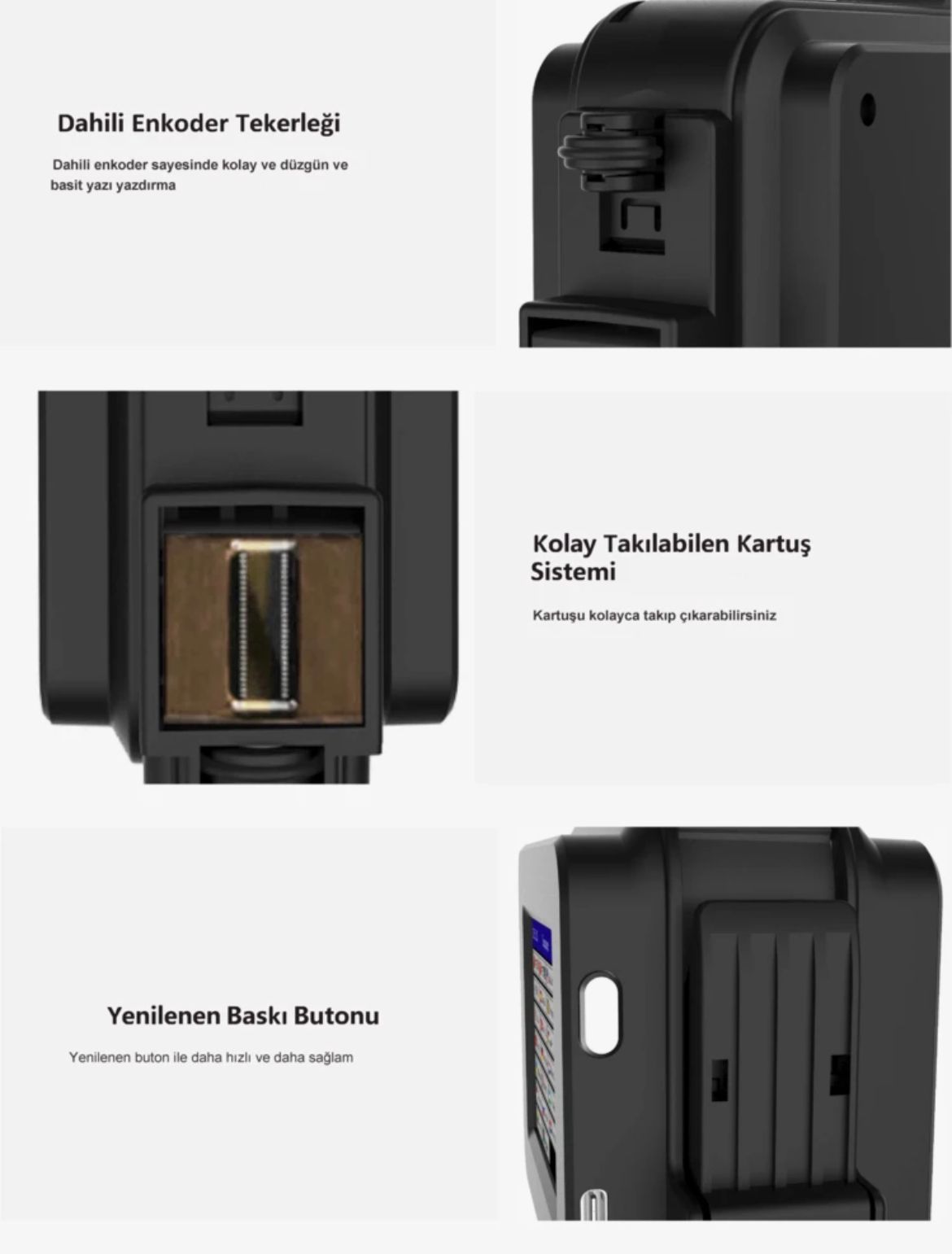 Taşınabilir yapısıyla palet ve kereste damgalama için idealdir. Dokunmatik ekranlı, hızlı kurulumlu ve tüm yüzeylerde net, silinmez baskı sağlar.